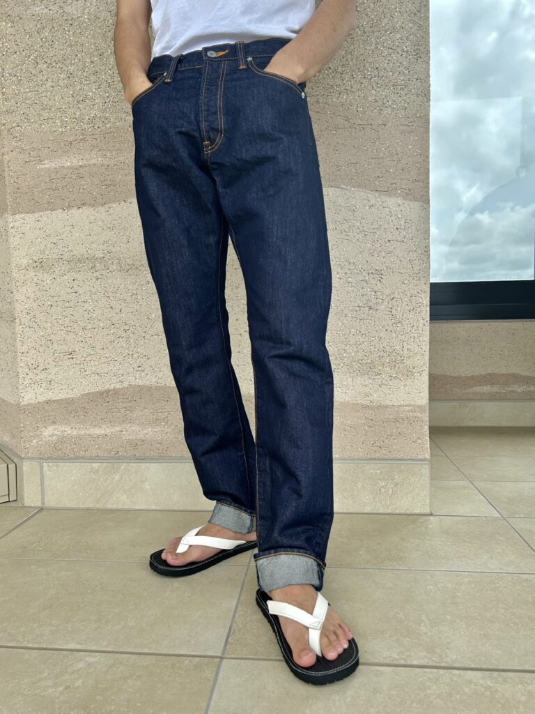 ワンウォッシュ仕上げで、色落ちなどエイジングによる変化を楽しめる1本です。